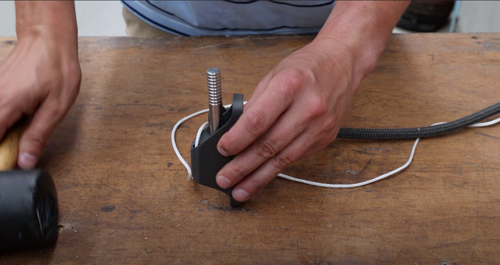 Insert the narrow end of the tool in to the front of the Cousin Constrictor cone and give it 2-3 strikes with a mallet. This will secure the cone and textile sock in place.