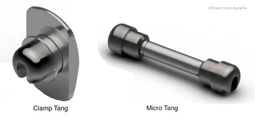 The top Diagonal tang is called the Cap tang and the others referred to by the Diagonal number e.g. D2 tang. Again, there are many different types, but most modern yachts will use tangs designed for Stemball end fittings. These will either be fixed to the mast wall - Clamp Tang – or a lower profile, lighter weight solution uses a through-bar system and commonly called a Micro Tang.