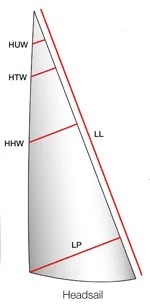 Where HLU = Headsail Luff Length, HLP = Headsail perpendicular (LP) and HHB = Headsail head width