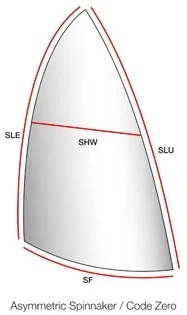 - SHW – Spinnaker Half Width (distance from mid-point SLU to mid-point SLE)