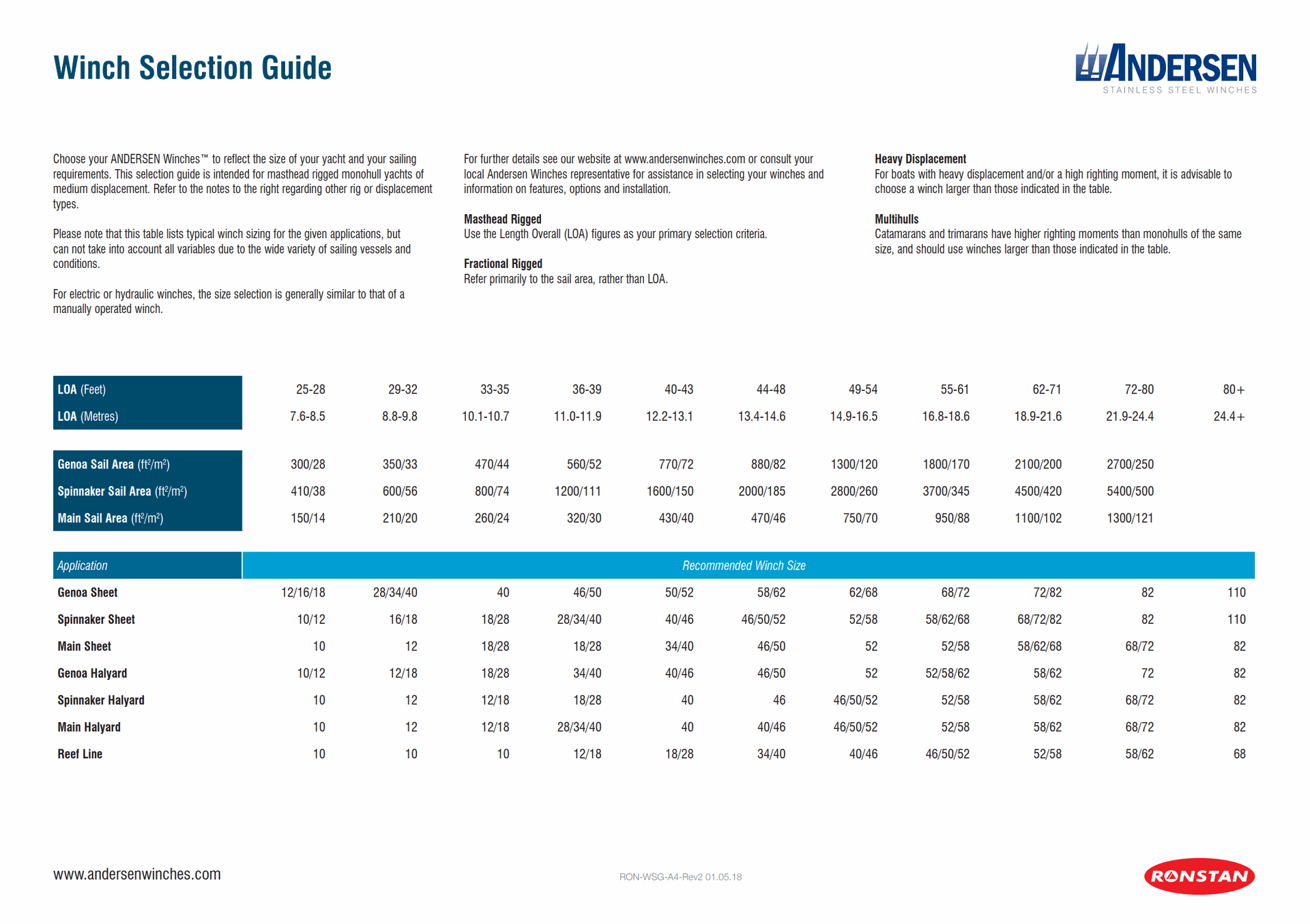 Andersen winch selection guide