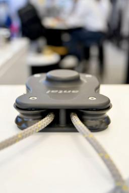 Antal line driver uses a self-tailing pulley with a textile gripping system that ensures efficient control without rope wear, even when the line is not under strain. A clutch pin offers two modes: it sets the direction or locks the line in place.