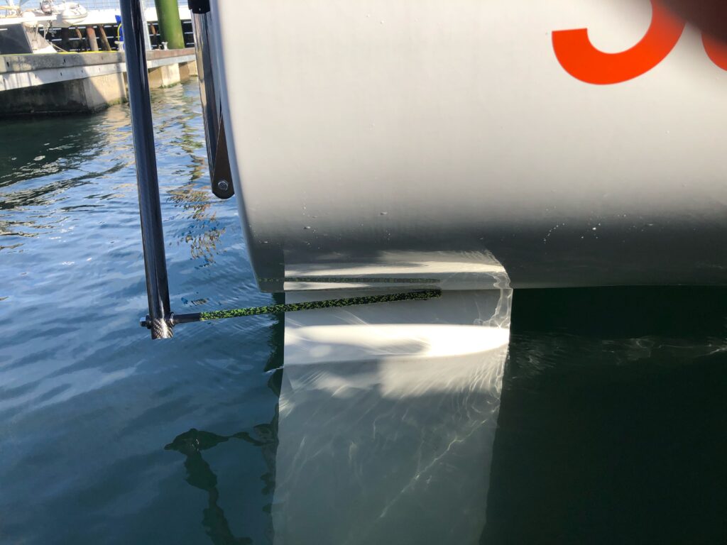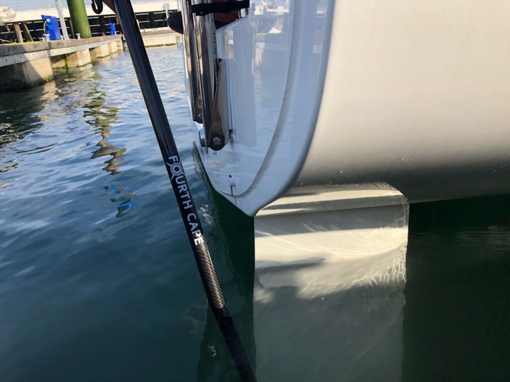 - First is the move away from long keel hulls to the now widely adopted fin and spade rudder configuration which provides plenty of near-vertical leading edge on which weed can become lodged