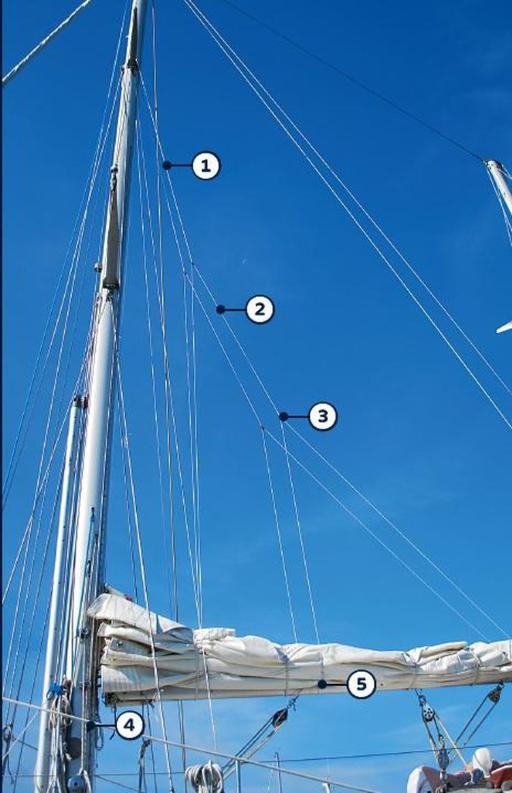 • Upper termination – attached to the mast, usually at or just above the lower spreaders.