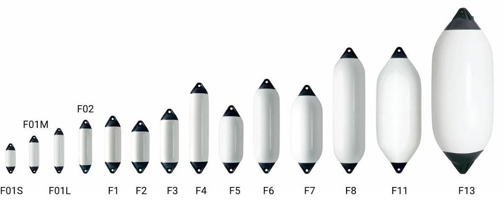 - Versatile Sizing: Polyform's F-series cylindrical fenders come in a wide range of sizes suitable for vessels ranging from small dinghies to commercial ships and Navy vessels.