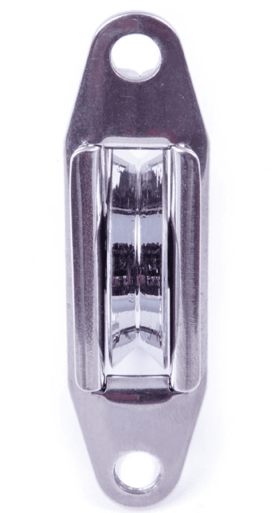 Our 25mm Brass sheave blocks are for medium-high load applications with slow running rope. The range works well with dyneema or wire rope as the stainless steel side plates stop high abrasive ropes from cutting in. The spar mounted block is fixed using 5mm bolts or rivets.